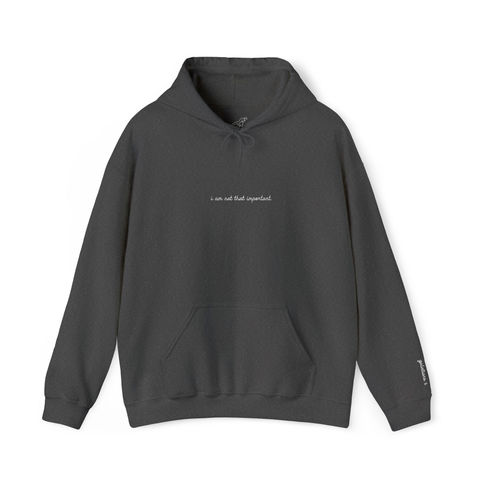 “i am not that important” embroidered on the front center chest. “galatians 6” on the left wrist.